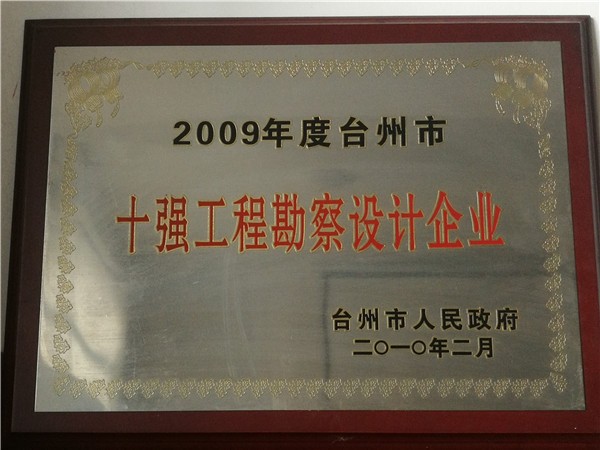 2009年度臺(tái)州市十強(qiáng)工程勘察設(shè)計(jì)企業(yè)