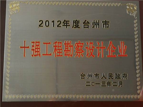 2011年度臺(tái)州市十強(qiáng)工程勘察設(shè)計(jì)企業(yè)